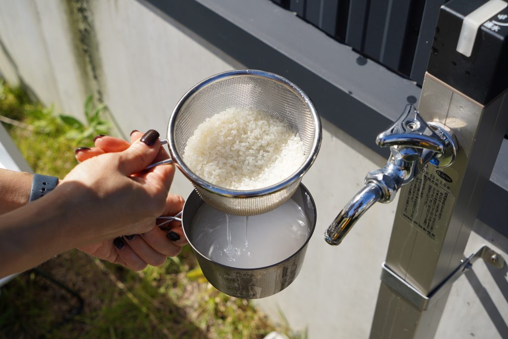 水を入れ、しっかりと浸水させます。お米の吸水スピードは水温が高いと早くなり、水温が低いと遅くなるので、目安ですが冬場は60分以上の浸水をおすすめします🏃♂️。