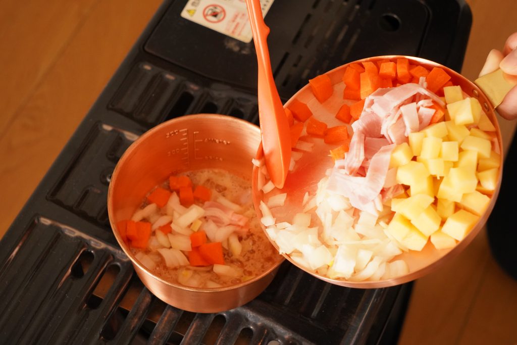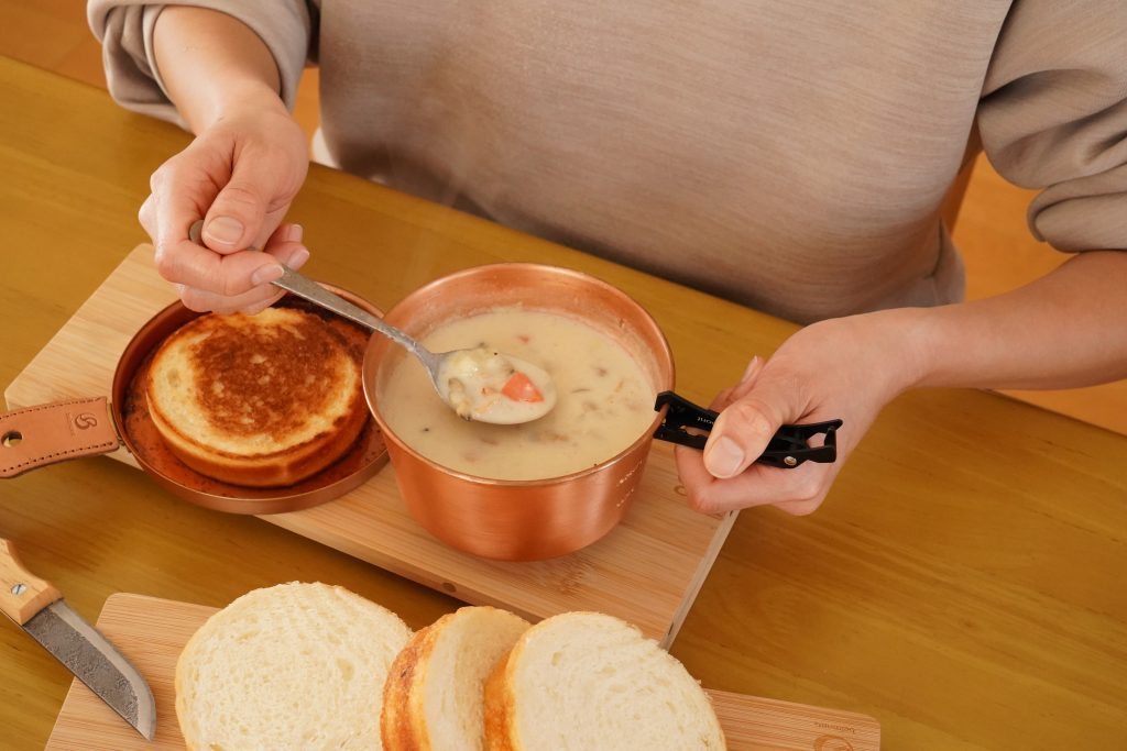 新商品のコッパーネストカップを使ってクラムチャウダーを作ってみました🦪。