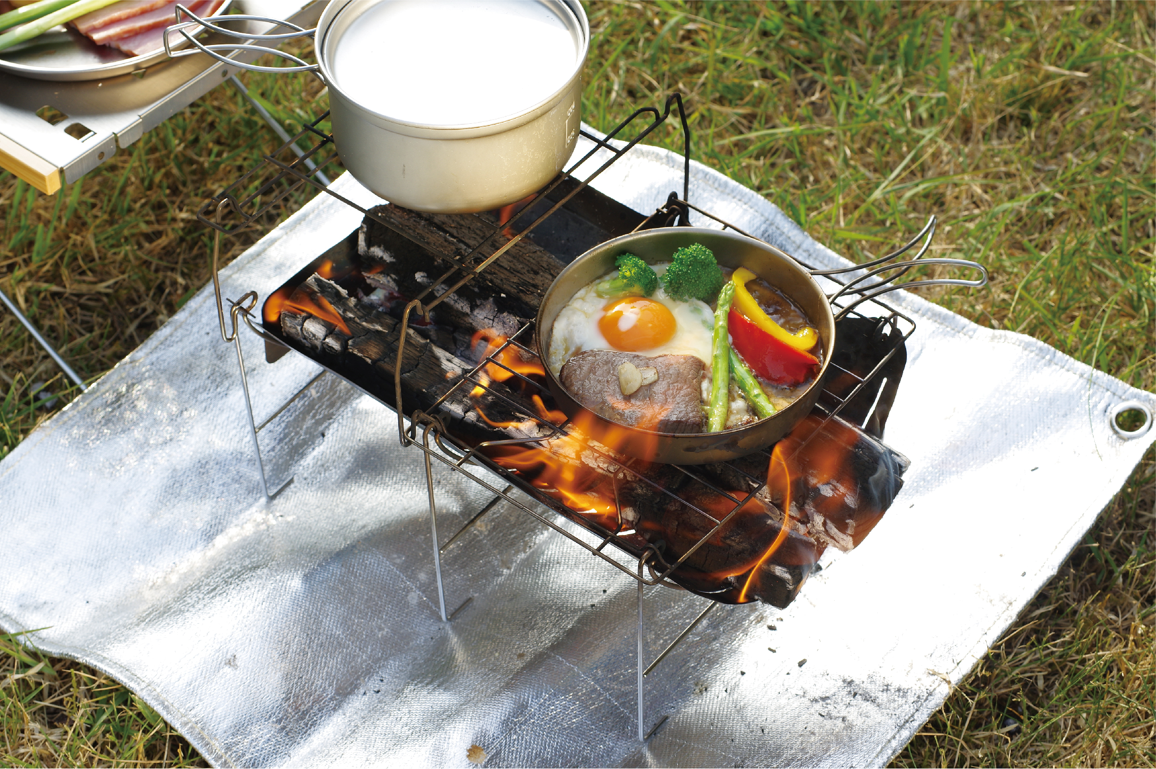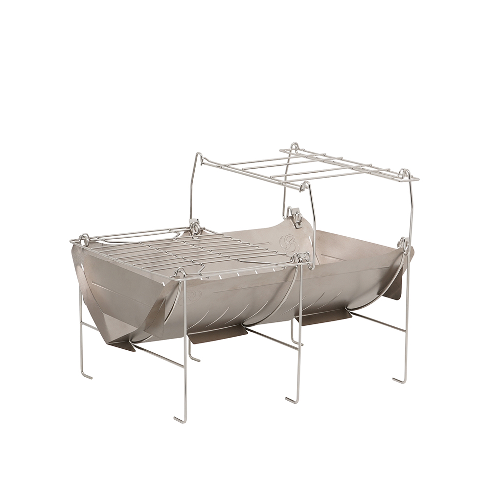 •提升高度后,可拉大烧烤网与火床的距离,方便添加木柴,同时让火焰烹饪操作更轻松。