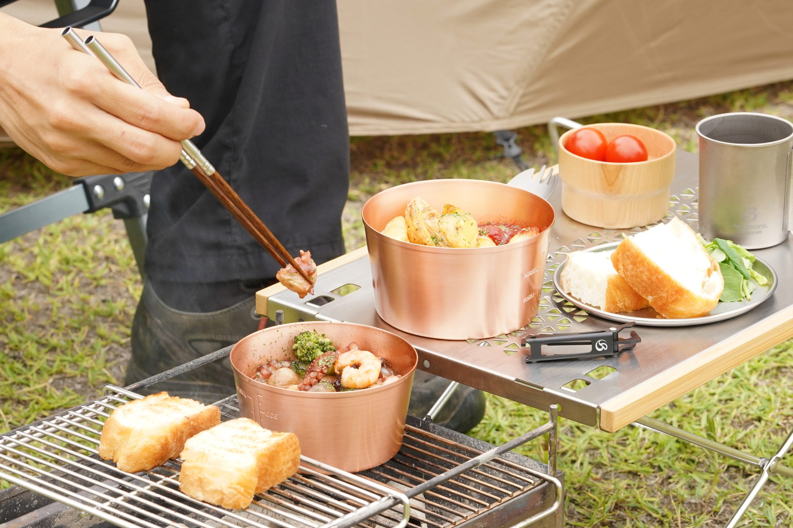 导热超群的纯铜雪拉碗,凭借无手柄设计实现轻松堆叠,同时能以铜系列煎锅(BM-518•519)作为锅盖来配套,更能提升使用便利性。
